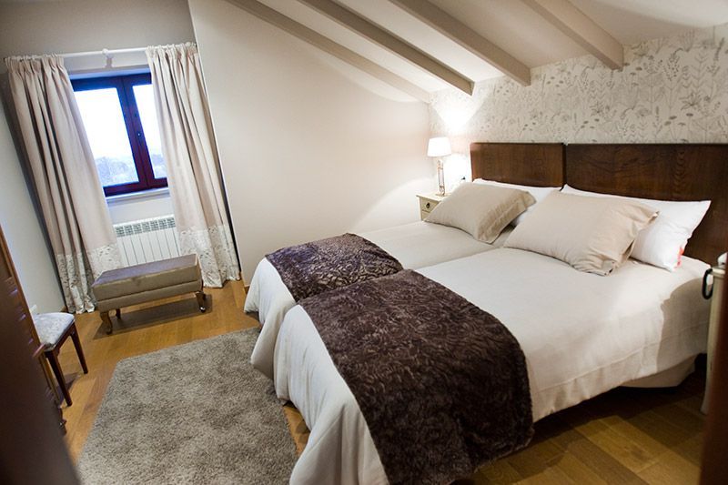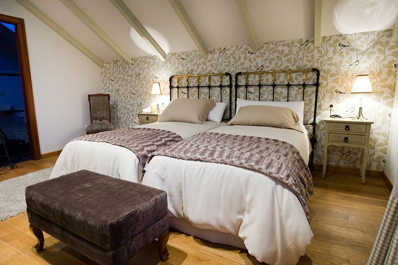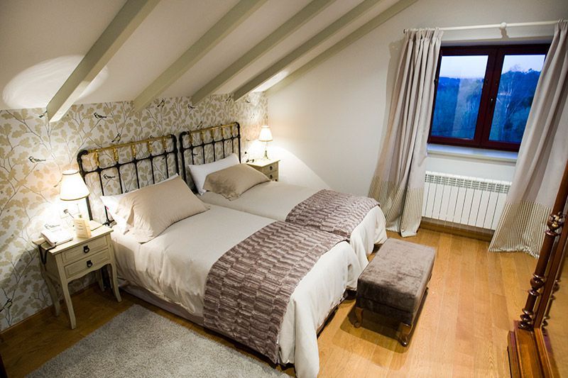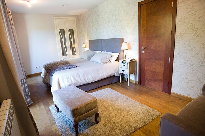 En nuestro hotel rural en Abegondo te esperan 8 habitaciones dobles, que podrás reservar en pareja o de manera individual. También te ofrecemos la posibilidad de acoplar una cama supletoria o cunas para bebés. Infórmate sin compromiso sobre cualquier extra que necesites añadir, intentaremos ofrecerte la solución que mejor se ajusta a lo que buscas.